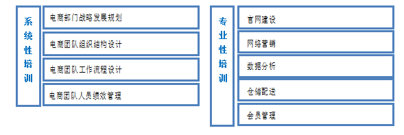 深遠(yuǎn)電商培訓(xùn)內(nèi)容包括業(yè)務(wù)提升兩大部分,業(yè)務(wù)提升培訓(xùn)主要圍繞形象展示、營銷推廣、產(chǎn)品管理、供應(yīng)鏈管理等業(yè)務(wù)層面的培訓(xùn)管理。管理提升培訓(xùn)主要提供電子商務(wù)人才培訓(xùn)輸出、經(jīng)驗輸出、機(jī)制輸出,為其搭建電子商務(wù)組織架構(gòu)、流程管理和團(tuán)隊建設(shè)提供智力投資。