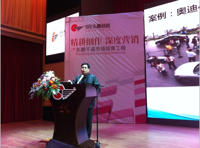 10月30日,主題為“精耕細(xì)作 深度營(yíng)銷(xiāo)”的東鵬“千縣市場(chǎng)培育工程”啟動(dòng)大會(huì)在江西豐城開(kāi)幕。應(yīng)廣東東鵬陶瓷股份有限公司的邀請(qǐng),中國(guó)?深遠(yuǎn)顧問(wèn)機(jī)構(gòu)董事長(zhǎng)、首席顧問(wèn)杜建君,當(dāng)天為東鵬營(yíng)銷(xiāo)團(tuán)隊(duì)、全國(guó)一級(jí)經(jīng)銷(xiāo)商和三四級(jí)市場(chǎng)經(jīng)銷(xiāo)商(分銷(xiāo)商)共500余人,作了為期一天的培訓(xùn)。東鵬陶瓷董事長(zhǎng)、總裁、常務(wù)副總裁、副總裁等公司高層領(lǐng)導(dǎo)參會(huì)。這是繼9月20日東鵬總裁戰(zhàn)略研討班培訓(xùn)后,杜總對(duì)大東鵬體系的第二次大型培訓(xùn)。