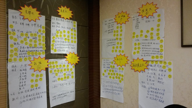 本期培訓(xùn)學(xué)員分為8個(gè)小組,各個(gè)小組選出組長(zhǎng),以小組PK的形式?jīng)Q出勝負(fù),各小組在研討交流、課堂互動(dòng)等環(huán)節(jié)進(jìn)行PK,贏得“笑臉”,累計(jì)積分最高的幾個(gè)小組將獲得承辦方頒發(fā)的證書(shū)與獎(jiǎng)品。此次培訓(xùn)使用了UMU現(xiàn)場(chǎng)互動(dòng),通過(guò)互聯(lián)網(wǎng)工具激發(fā)學(xué)員參與動(dòng)力,快速統(tǒng)計(jì)學(xué)員服務(wù)站現(xiàn)狀。在學(xué)習(xí)和研討過(guò)程中,先鋒隊(duì)、三晉隊(duì)和聚賢隊(duì)、豫英隊(duì)表現(xiàn)優(yōu)異,分別獲得第一名、第二名和并列第三名。課堂表現(xiàn)優(yōu)秀的學(xué)員,也獲得優(yōu)秀學(xué)員證書(shū)與獎(jiǎng)品。通過(guò)課堂的學(xué)習(xí)和研討,學(xué)員們?cè)谒枷肷?、理念上?shí)現(xiàn)了優(yōu)化升級(jí),為助力學(xué)員逆勢(shì)提升服務(wù)業(yè)績(jī)開(kāi)拓了新思路、新方法、新工具。在培訓(xùn)完成時(shí),大家都意猶未盡,紛紛與老師、與組員合影留念,一些學(xué)員與深遠(yuǎn)老師進(jìn)行深入溝通,希望能夠親臨服務(wù)站進(jìn)行指導(dǎo),我們鼓勵(lì)學(xué)員報(bào)名柳汽組織的駐店輔導(dǎo)。