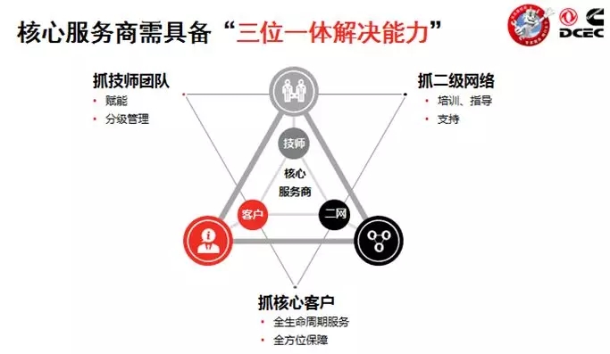 而作為核心服務(wù)商需要具備“三位一體解決能力”,抓核心客戶、抓技師團隊和抓二級網(wǎng)絡(luò)。抓核心客戶方面,杜總分享了他獨創(chuàng)的“趨優(yōu)-趨低消費服務(wù)模型”,服務(wù)商需要重點關(guān)注兩類人群:趨優(yōu)群體&趨優(yōu)行為、趨低群體&趨優(yōu)行為;抓技術(shù)團隊方面,針對服務(wù)商老板的3個痛點,杜總一一給出了解決方案;抓二級網(wǎng)絡(luò)方面,杜總分享了其拜訪的一家DCEC服務(wù)商的案例,他認為與二網(wǎng)合作需要遵循“八字原則”:尊重、溝通、妥協(xié)、共贏。